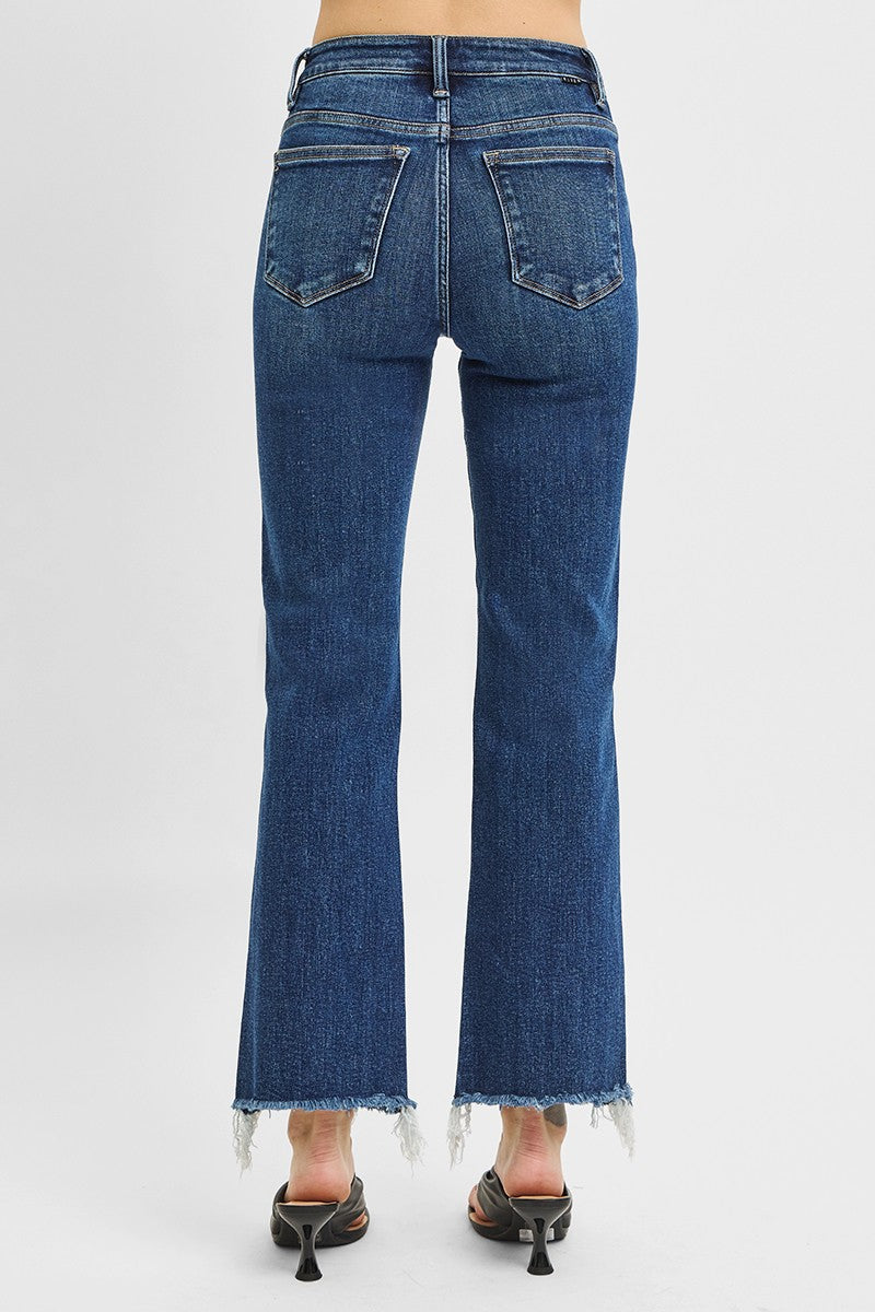 TUMMY CONTROL RISE CROP STRAIGHT RAW CUT HEM JEANS
