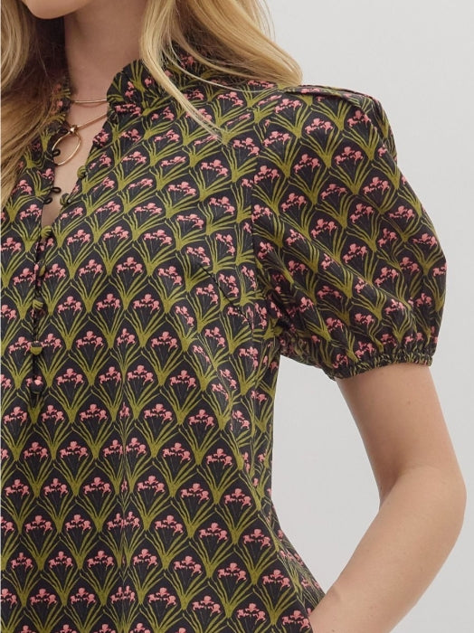 BLACK FLORAL MIDI DRESS