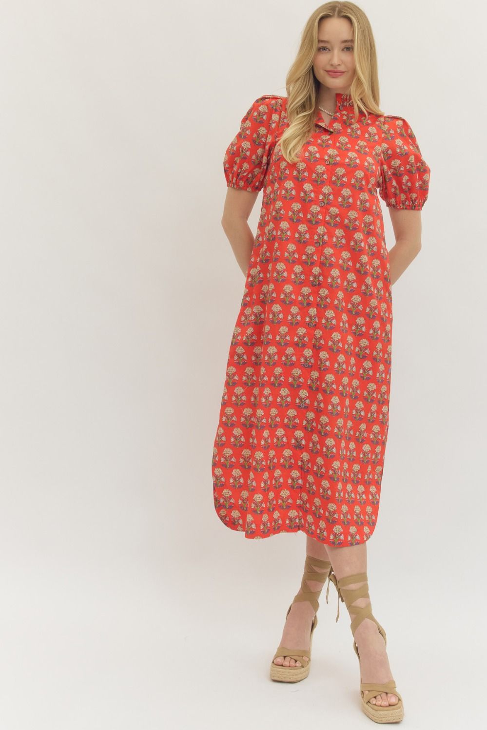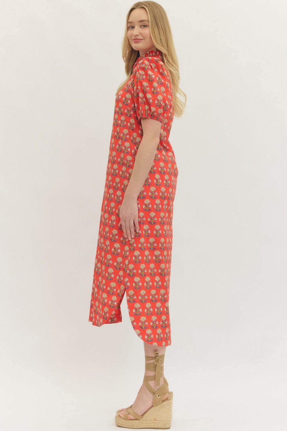 RED FLORAL MAXI SPLIT SIDE DRESS