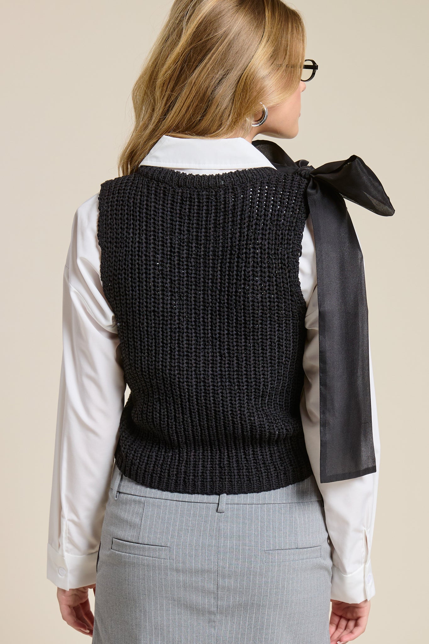 This sleeveless knit top is made from a soft textured knit, featuring an oversized bow detail at the shoulder for added charm. Complete with a cropped and fitted silhouette that keeps it modern, while the organza fabric bow detail adds a romantic touch to your outfit.