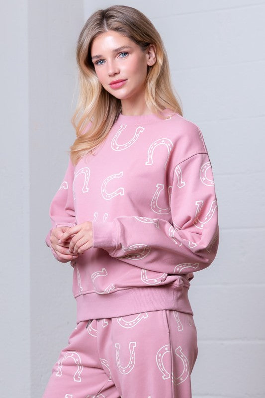 CUTE MAUVE LONG SLEEVE HORSESHOE PRINTED SWEATSHIRT