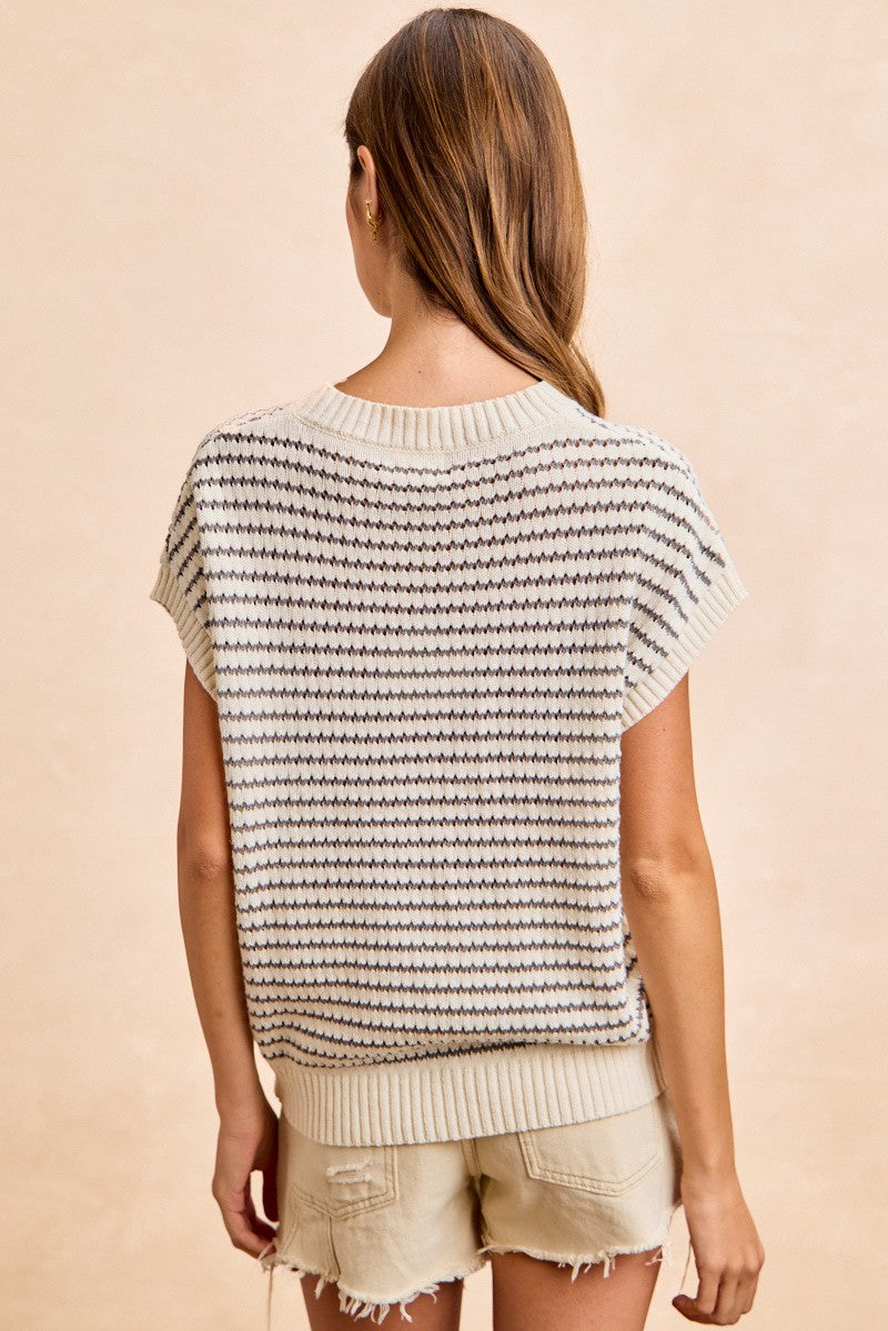 POINTELLE STRIPES SLEEVELESS DROP SHOULDER LIGHTWEIGHT SWEATER TOP