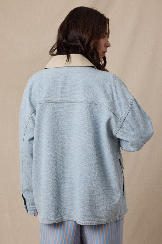COTTON DENIM UTILITY JACKET - FUNCTIONAL BUTTONS